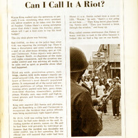 - Page 3 of the book/pamphlet "Reporting the Detroit Riot" which was produced by the staff editors of the Detroit Free Press. The header on this page is titled "Can I Call It a Riot?" and features an image of a soldier pointing a weapon at a crowd of African Americans.