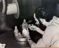 Photograph of a sculptor at Ann Arbor Art World taken by John Sinclair.