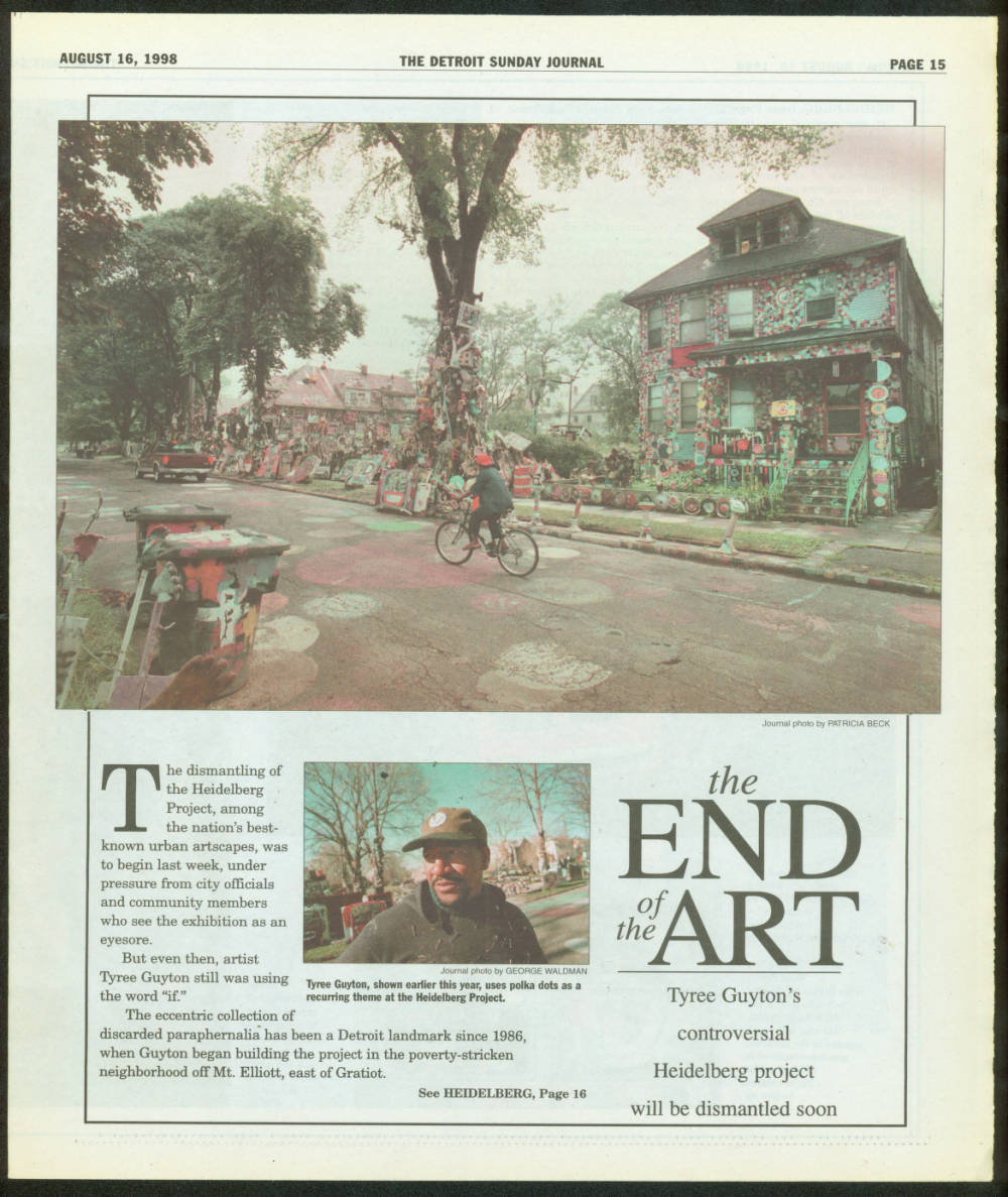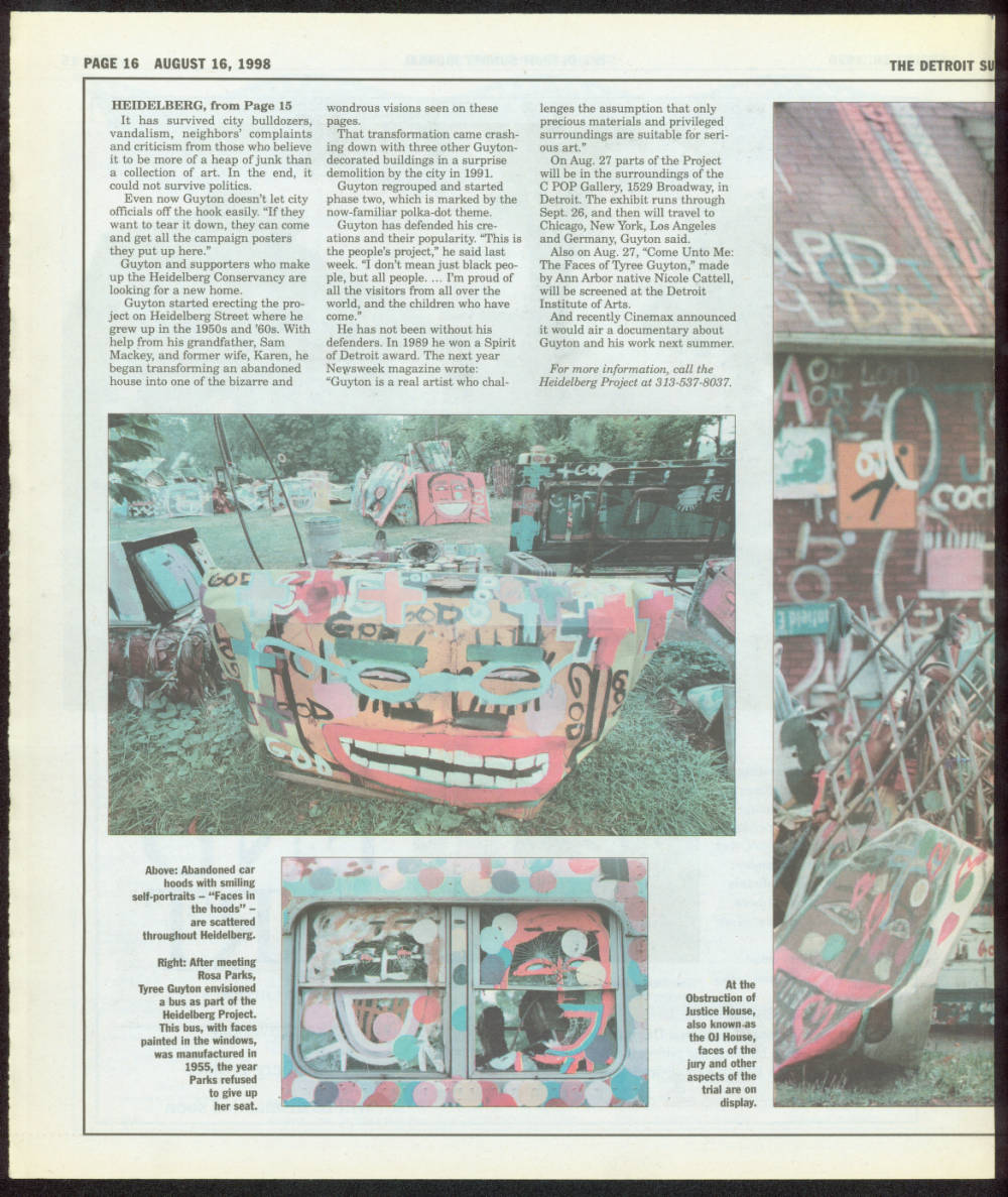 - Article on Tyree Guyton and the Heidelberg Project from the August 16-22, 1998 issue of The Detroit Sunday Journal, a weekly newspaper published by striking workers during the Detroit Newspaper Strike.