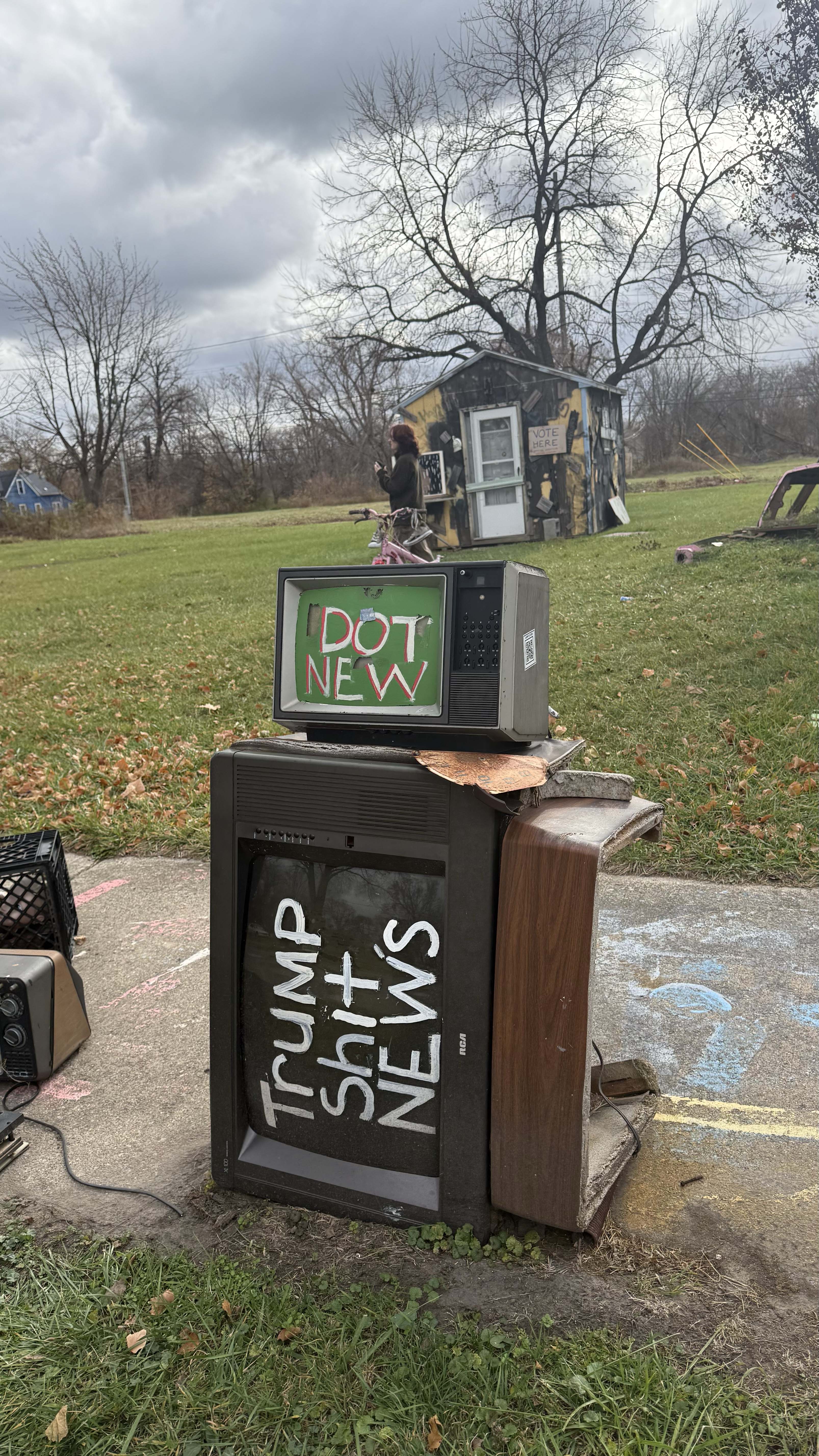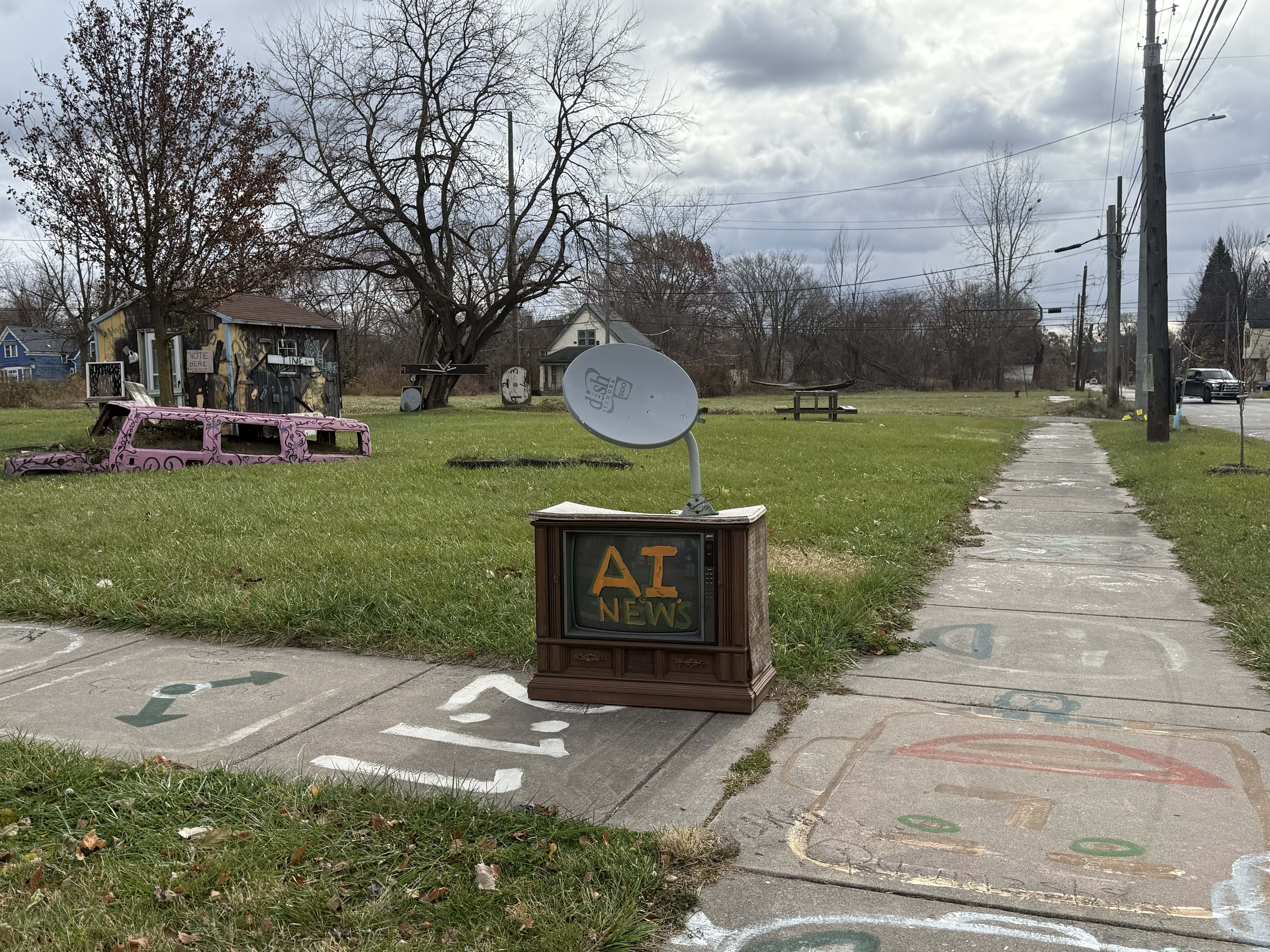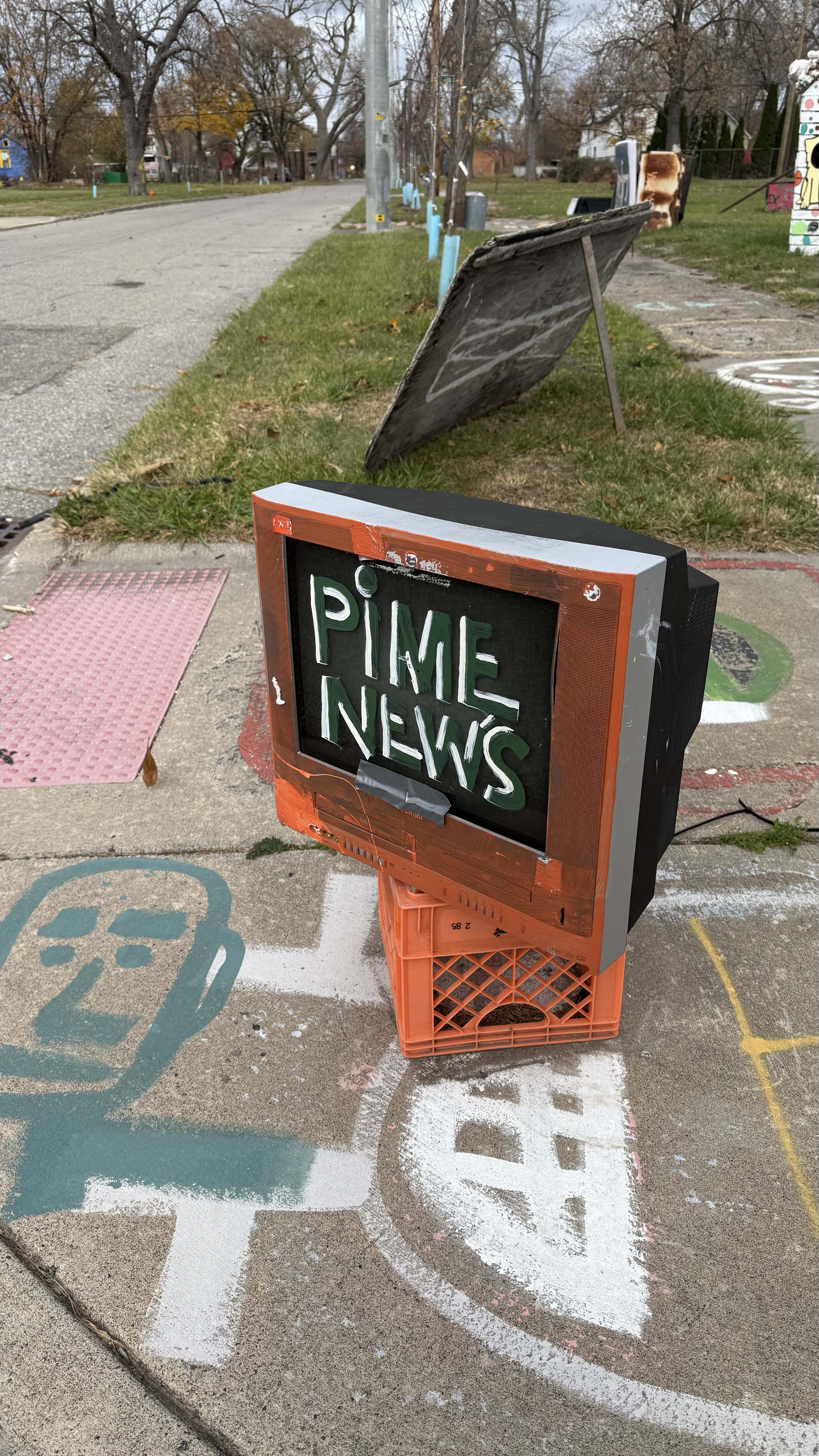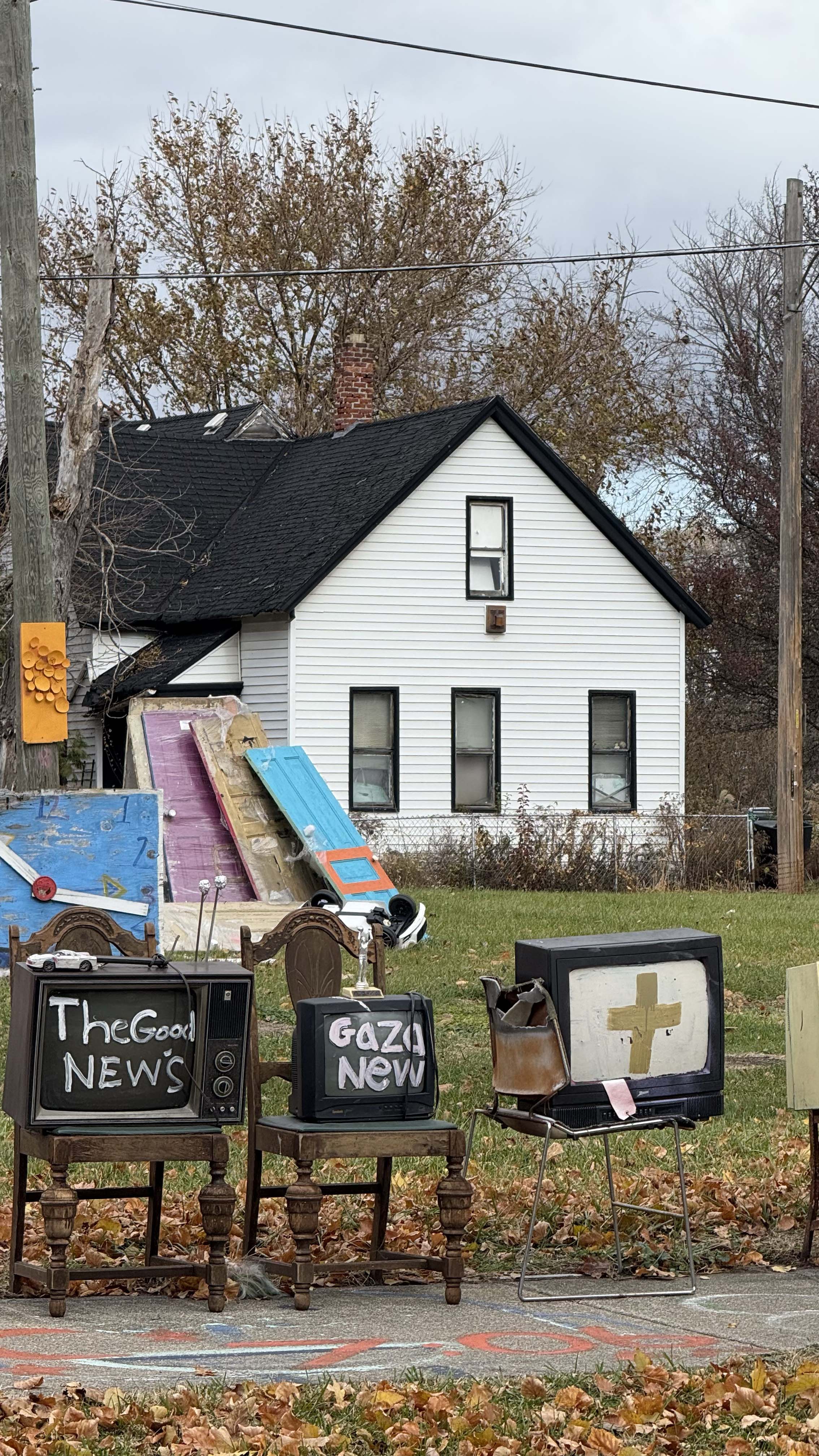 - Photos taken at the Heidelberg Project on November 16th, 2025, focusing on news and TV imagery.