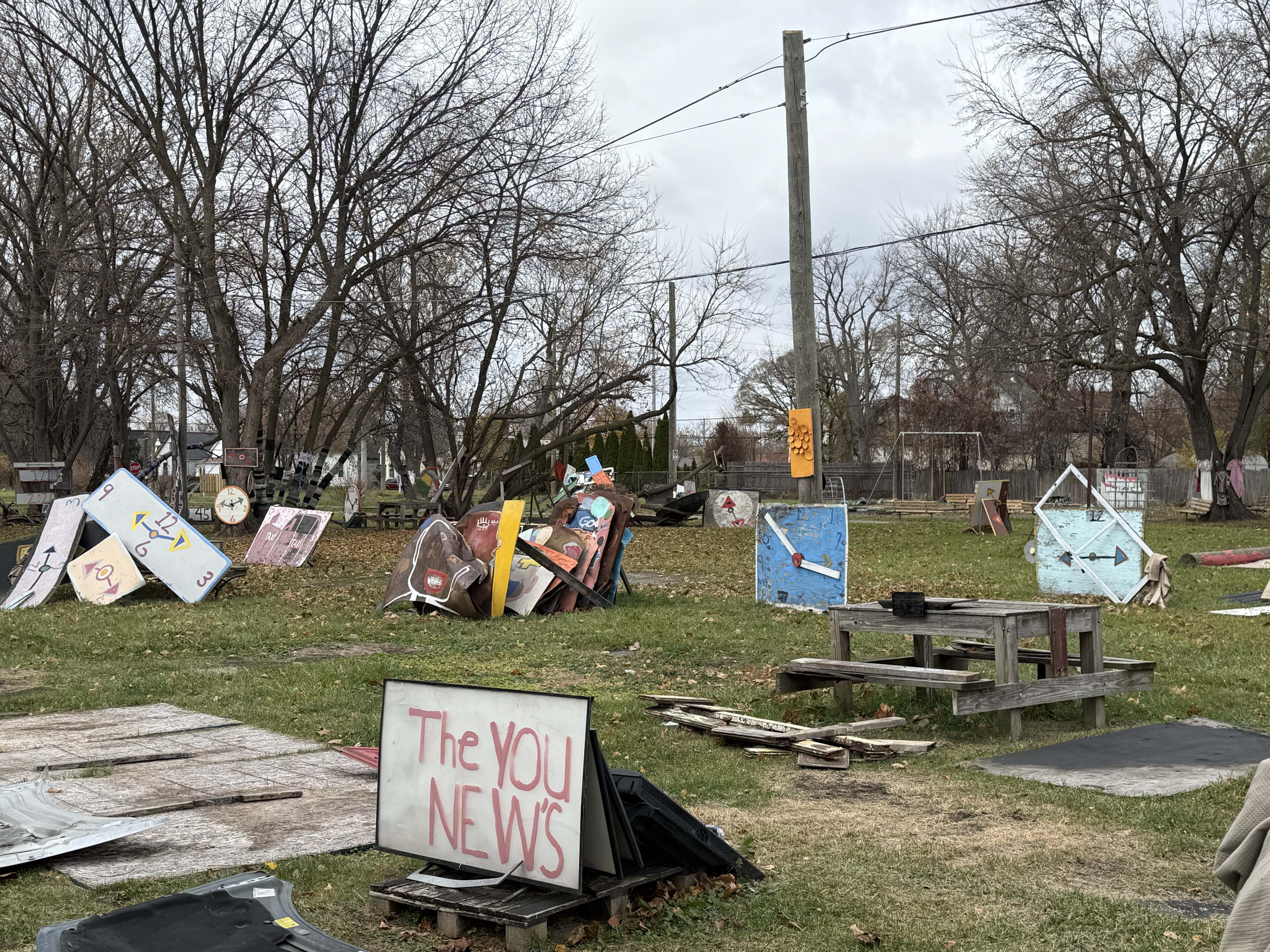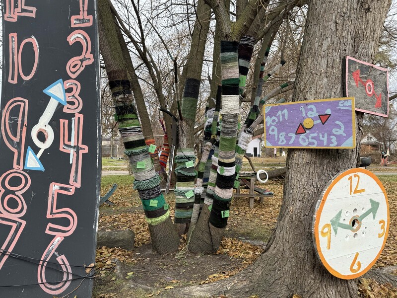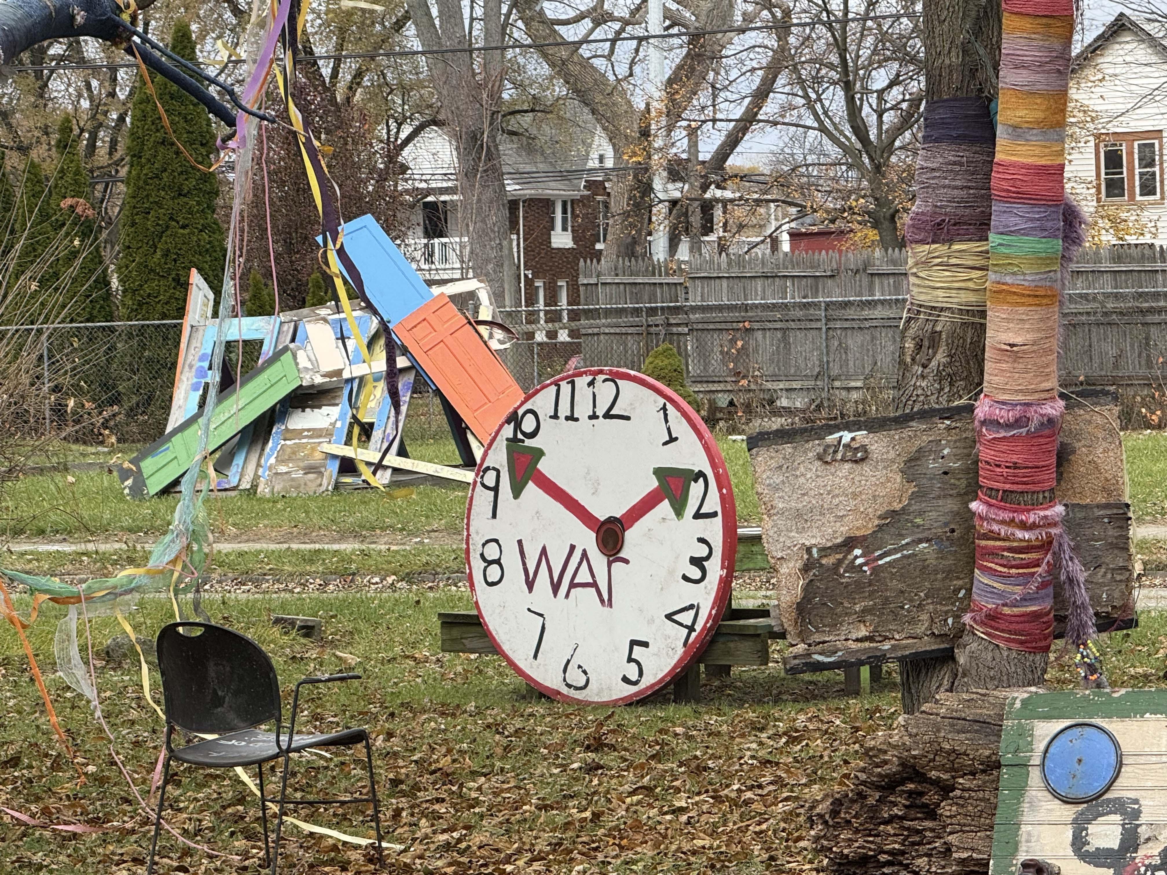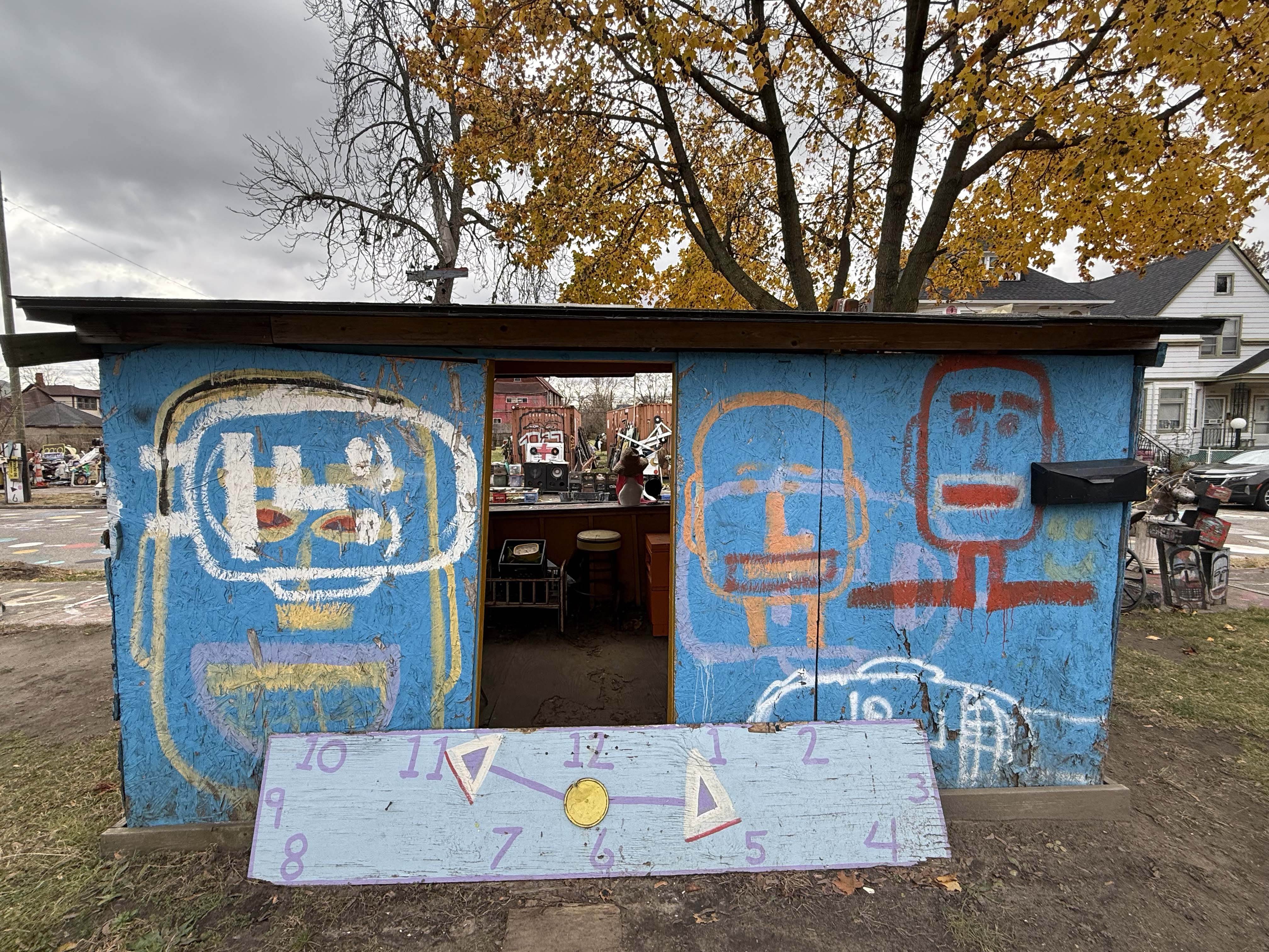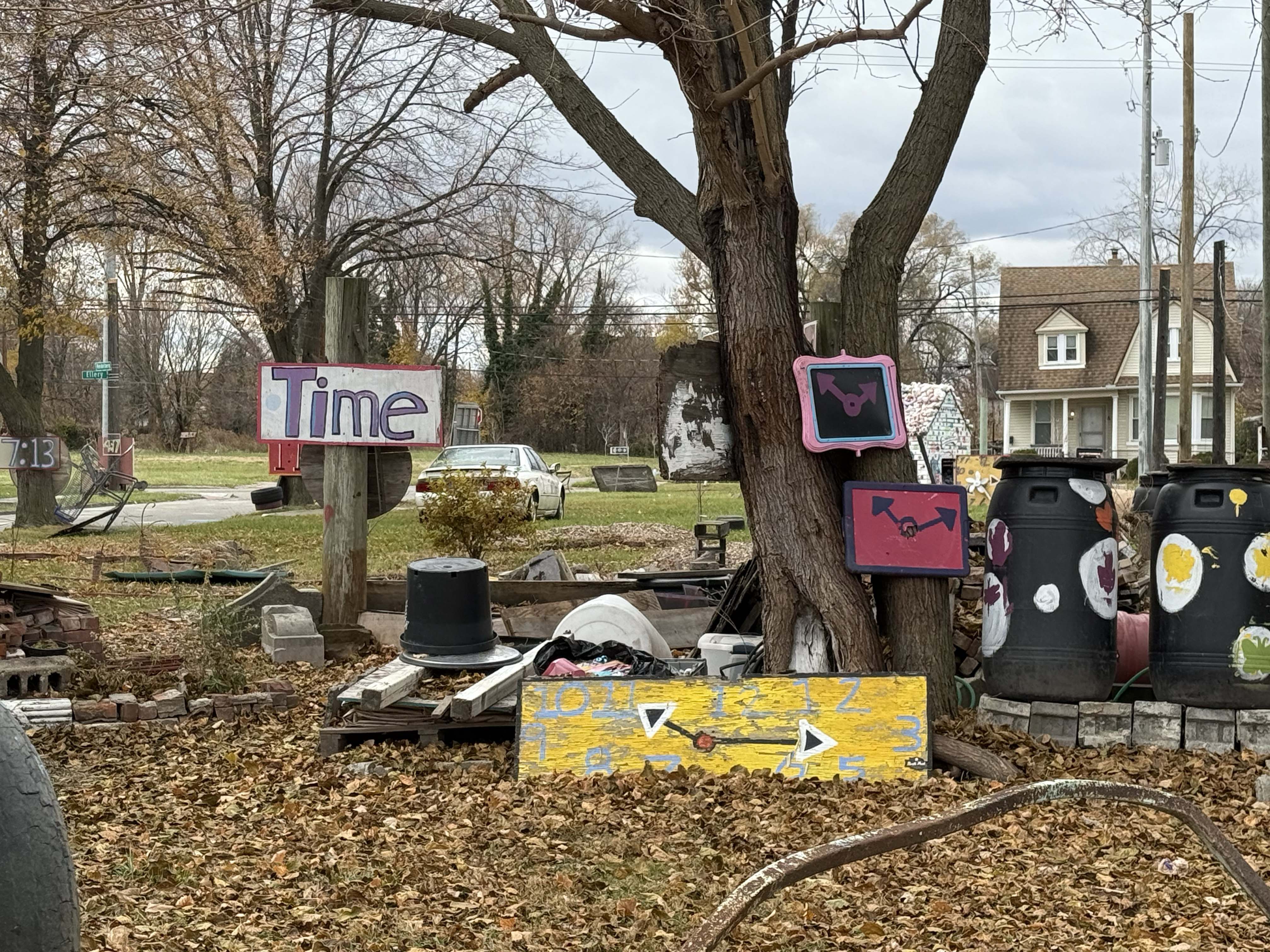 - Images taken at the Heidelberg Project on November 16th, 2025, focusing on clock and time imagery.