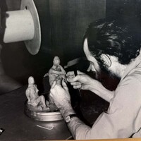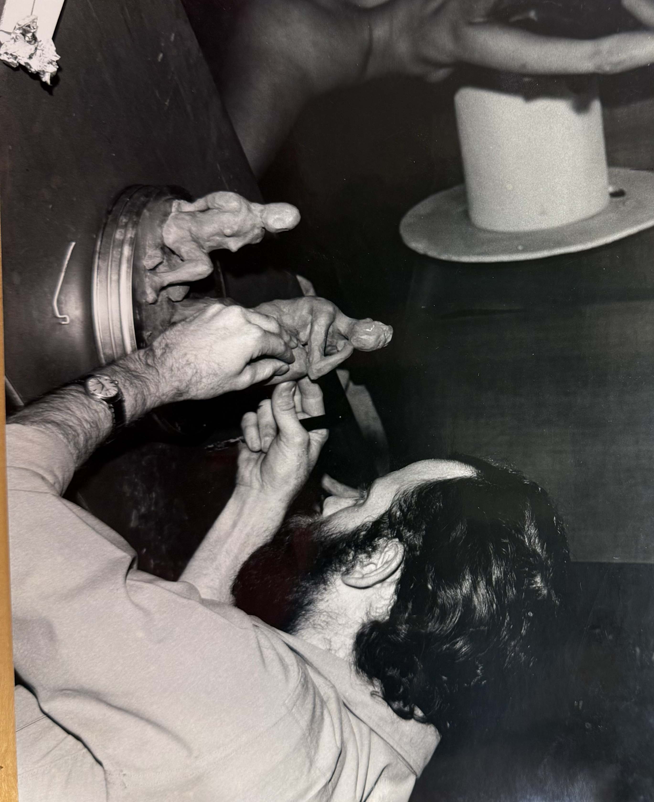- Photograph of a sculptor at Ann Arbor Art World taken by John Sinclair.
