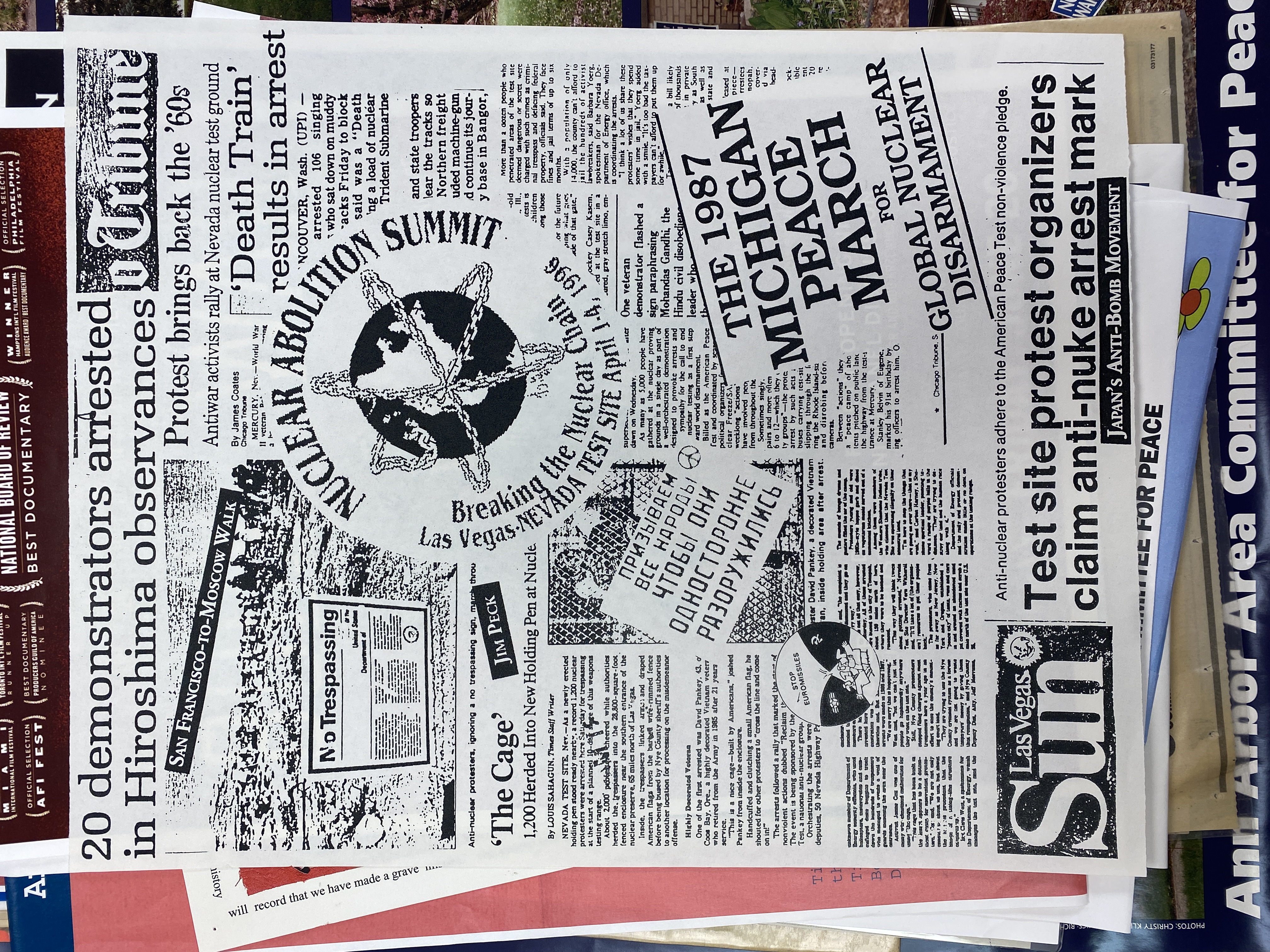 Collage of Anti-Nuclear Weapons headlines from various newspapers.