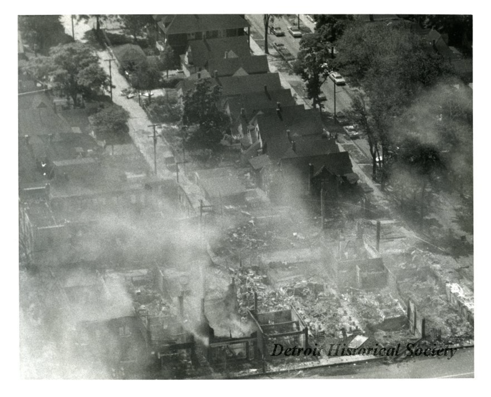 - One black and white aerial photograph of burning buildings taken during the 1967 Detroit Riot.