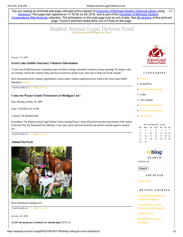 Please be aware that this archive includes sensitive content, including some images and descriptions of animal abuse and suffering. These materials may be upsetting, and we encourage viewers to proceed as they feel comfortable.