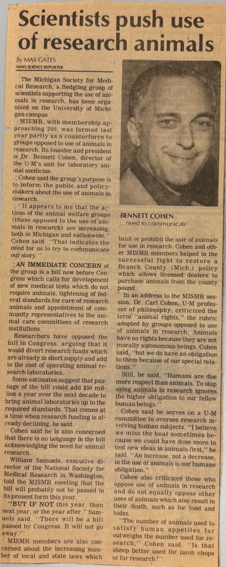 Our goal is to provide researchers, students, and all other interested parties with a comprehensive, educational, and accessible resource that centers the breadth of animal activism at U-M, while also placing these movements in conversation with the powerful research infrastructures they worked to challenge. The University of Michigan is home to one of the oldest and most widely influential animal testing research laboratories in the country: Unit for Laboratory Animal Medicine (ULAM). The long presence of ULAM also means that animal activism has been active on campus for decades. Yet the university archives overwhelmingly reflects the institutional history of animal testing rather than the grassroots movements that contested it.