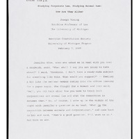 A draft of an essay from former University of Michigan Law Professor and animal welfare advocate Joseph Vining. In this essay dated March 9th, 2005, Joseph Vining makes comparisons between the realms of corporate and animal law-reflecting on how corporate law is considered a more respectable field although animal law concerns sentient beings.