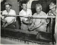 Mexican Men and Boys saying goodbye to their mothers, wives and children, to work on farms in the U.S. They were off to fill the labor shortage during World War11 often called Braceros.