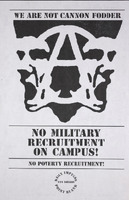 Anti-war, against the "poverty draft", This poster spells out a stance against recruitment practices of the military that might be exploiting the disadvantaged backgrounds of low income students.