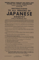 This poster was made in response to the Civilian Exclusion Order No. 75, which forcibly removed Japanese Americans regardless of citizenship status from their residences on the West Coast before they were incarcerated. This order was issued in 1942 during World War II.