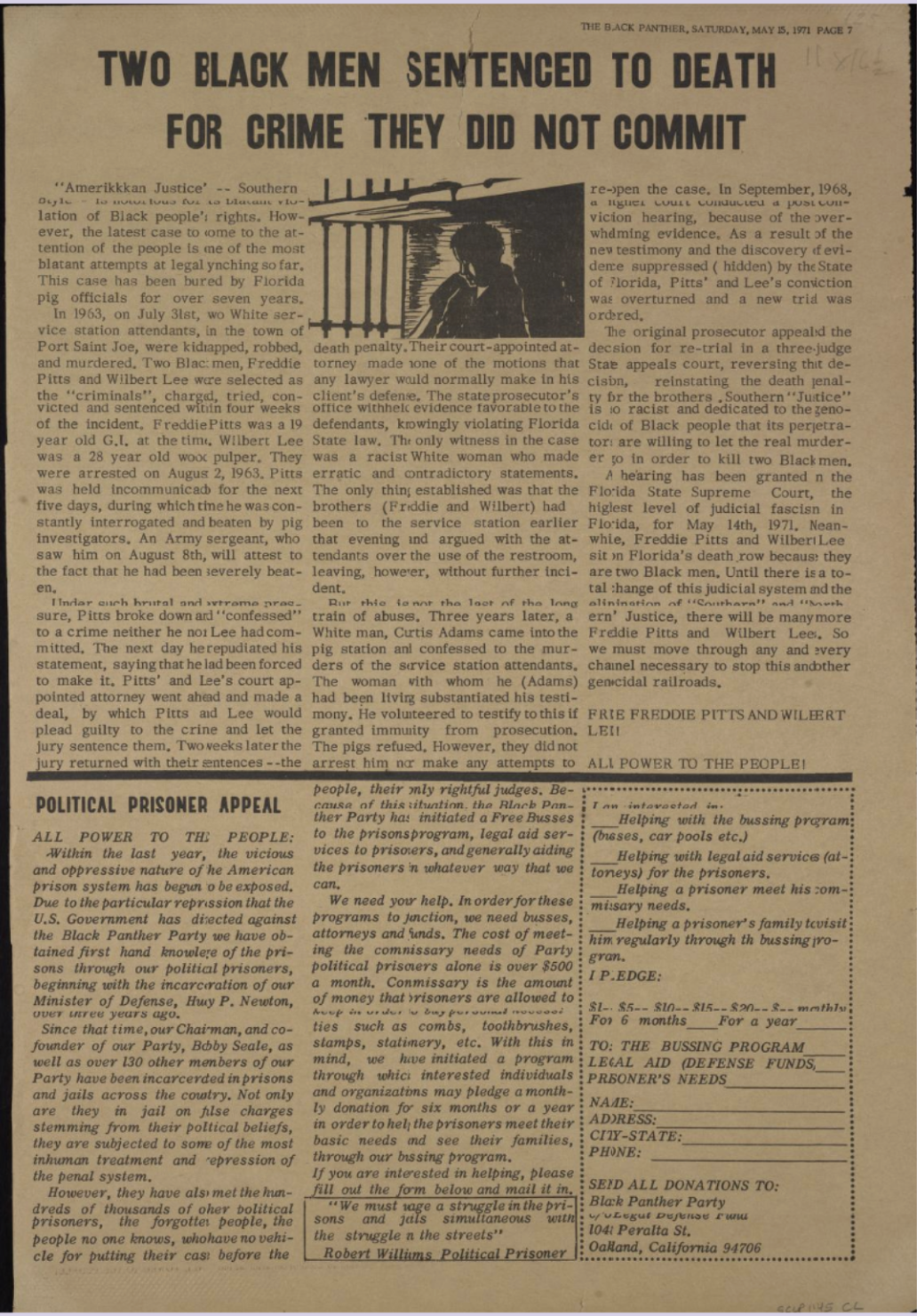 - A newspaper article brings attention to racial injustices as two Black men are wrongfully held prisoner and put on death row for a crime they did not commit.