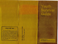 Youth Survival Guide Brochure created by Ann Arbor group Easy Access to Services for Youth (E.A.S.Y.) listing various support services. In the brochure, it lists contact information for a Gay Hotline and Leaping Lesbian, local lesbian newsletter.