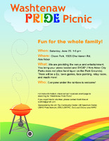 Flyer for 2011 Washtenaw Pride Picnic A flyer for the 2011 Washtenaw Pride Picnic, sponsored by the Jim Toy Community Center, UM Spectrum Center, UMHS Pride Network, EMU LGBTRC, Out Loud Chorus and HARC. Includes details for the event and invites "anyone under the rainbow".