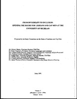 From Invisibility to Inclusion: Opening the Doors for Lesbians and Gay Men at the University of Michigan A report published by the Spectrum Center's Study Committee on the Status of Lesbians and Gay Men that details the campus climate of lesbian, gay, and bisexual members of the University of Michigan, including specific issues and recommendations.