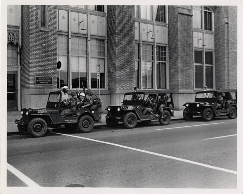 This archive is a collection of materials that demonstrate the impact of the 1967 Detroit Uprising, and ensuing U.S. National Guard deployment, on the city’s built environment and the ways that people continue to live within it. We are four graduate students in archival and library science with varied academic backgrounds in history and public history, political science, ethnic studies, anthropology, carceral state studies, humanities, and literature. We chose this project because of our physical proximity to the city and archival collections at the Detroit Public Library, our shared interest in how empire and resistance are manifested in human geographies, and our consciousness of present-day recurrences of National Guard deployment against civilians.