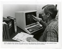 Photograph showing a demonstration of the In-Plant Maintenance Training program with a PLATO terminal. Caption reads: "PLATO computer-based training (CBT) delivers the In-Plant Maintenance Training program that helps employers protect their investment in new electronic equipment and other sophisticated manufacturing hardware."