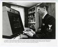 Photograph of a Navy personnel using a PLATO terminal. Caption reads: "A computer-based education system capable of delivering a wide range of instructional materials for military personnel is offered by Control Data Corporation. Control Data PLATO provides individualized, self-paced instruction in the form of text, numbers, animated drawings and other graphics."