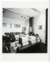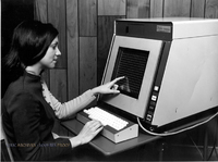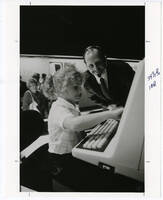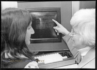 Photograph of University of Illinois Professor Kathyrn Henderson instructing a Library and Information Science cataloging student using the Plato computer-assisted program