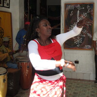 - Teresa rehearsing wtih Oba Ilú in a space they shared with Cabildo Quisicuaba in the Los Sitios neighborhood of Havana (2011).