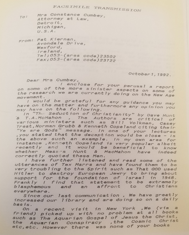 - Letter to Mrs Constance Cumbey from Pat Kiernan