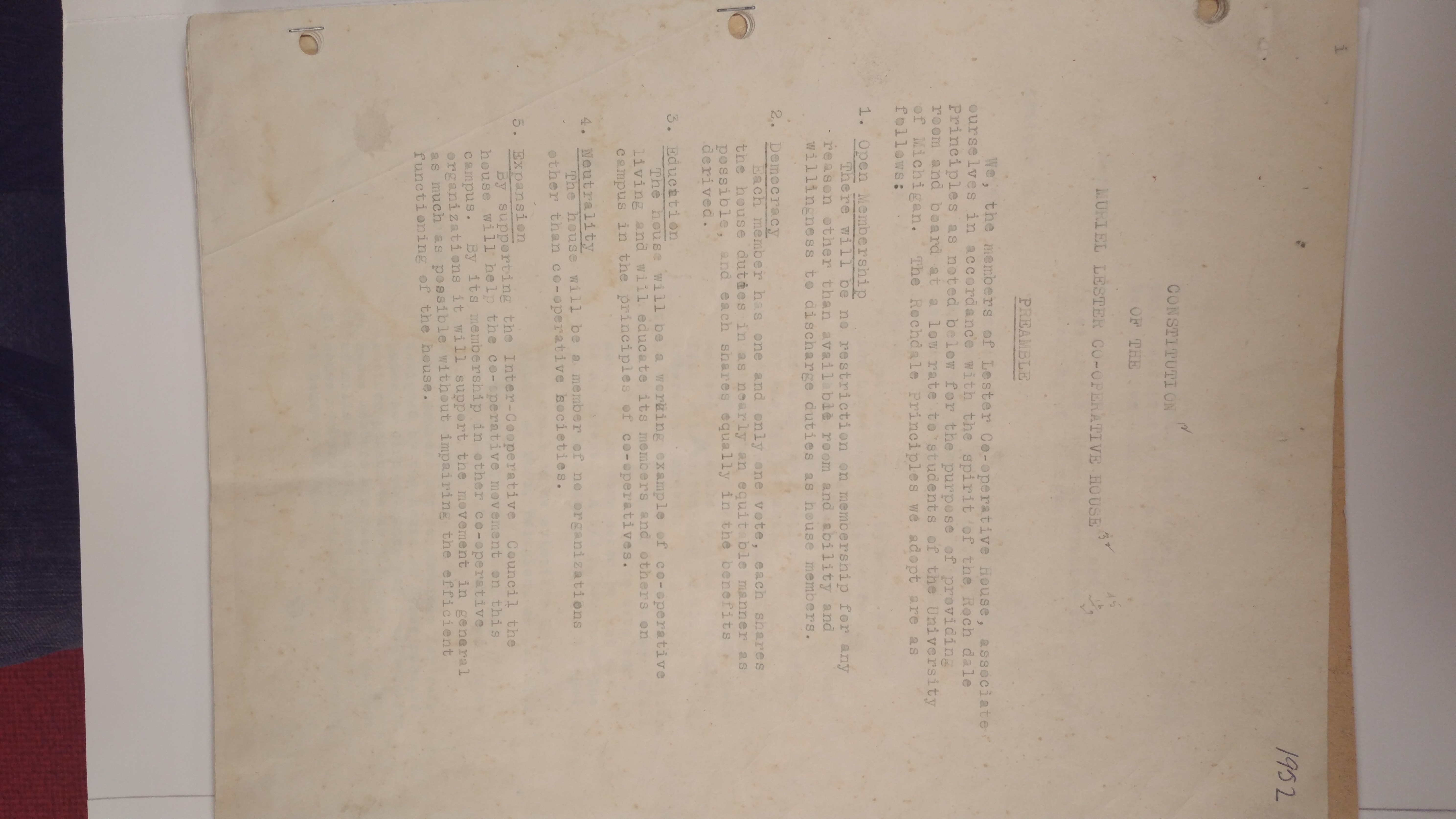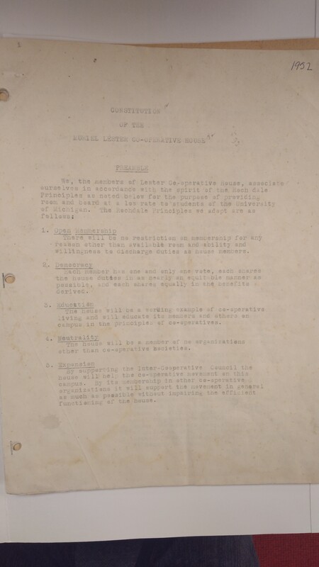 - The original copy of Muriel Lester Cooperative's House Constitution