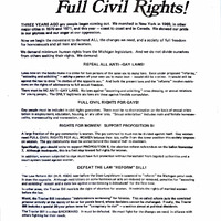 - A poster advertising a march and rally to ban discrimination based on sexual orientation in Lansing, MI in 1972.