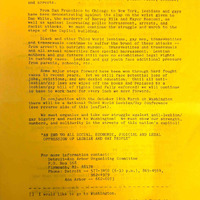 - Advertisement for Tenth Anniversary celebration of Stonewall (1969), as well as for the first National Third World Lesbian/Gay Conference.