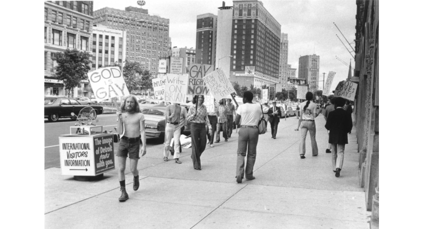 - A group of protestors were demonstrating the firing of Brian McNaught, a columnist at the Michigan Catholic who came out as gay and found the Detroit chapter of the gay Catholic organization Dignity.