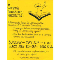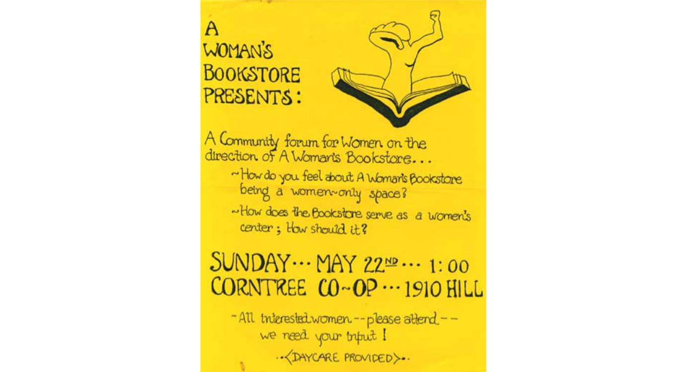 - A flyer created by a feminist lesbian collective advertising a woman's only bookstore serving women and lesbians in Ann Arbor