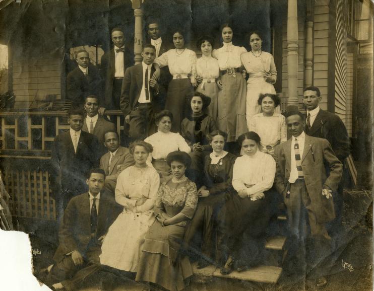 - This photograph depicts a large group of brothers of Alpha Phi Alpha and friends of the fraternity posed for a group photo on the porch of their house.