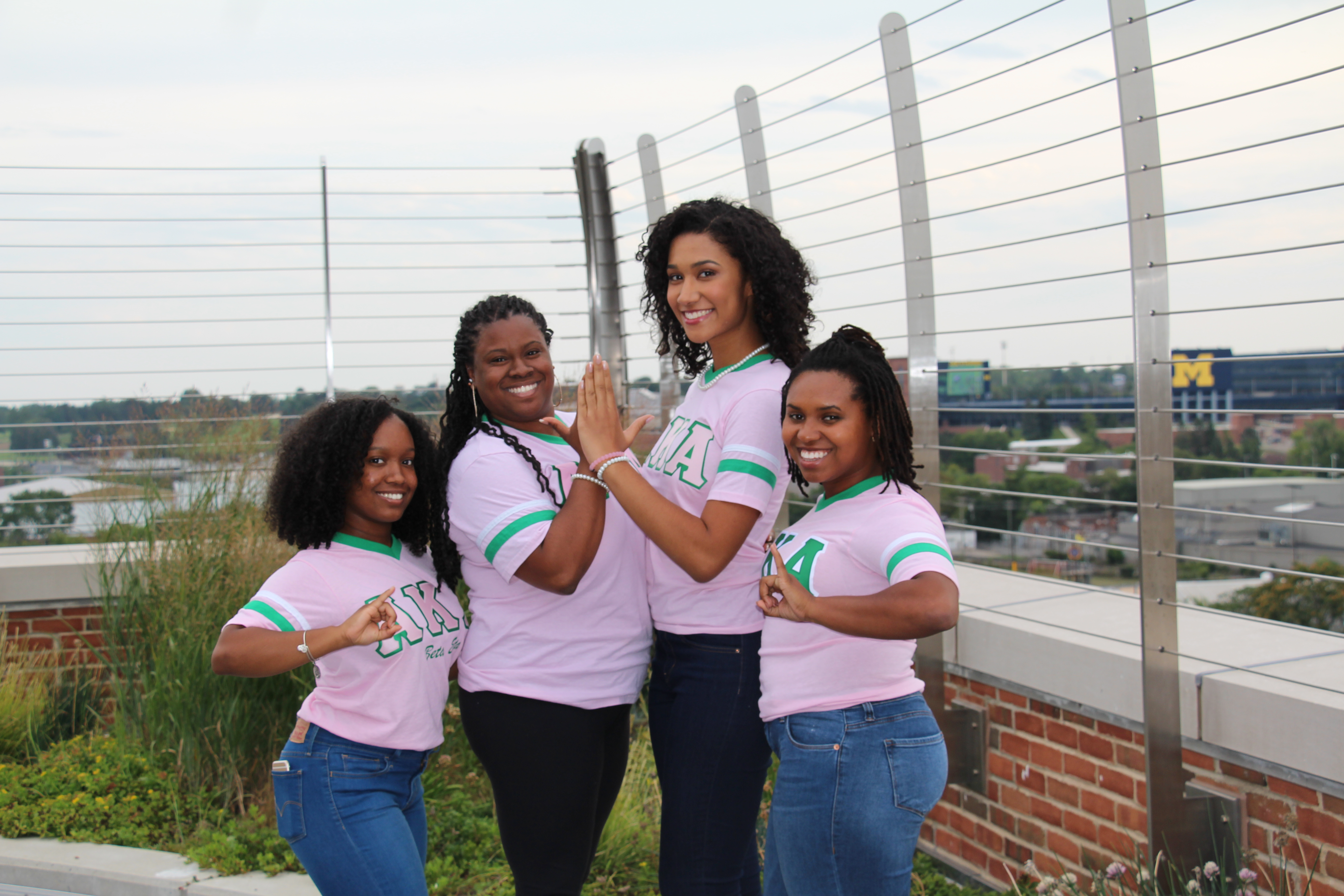 - Four members of Alpha Kappa Alpha pose for a picture outside at the National Pan-Hellenic Council Week event, which took place in 2017. The Michigan Stadium can be seen in the background.
