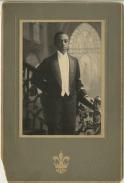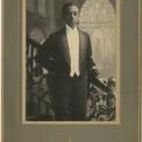 - A photograph of a well dressed member of Alpha Phi Alpha posing on a set of church steps, presenting a similar aesthetic of professionalism