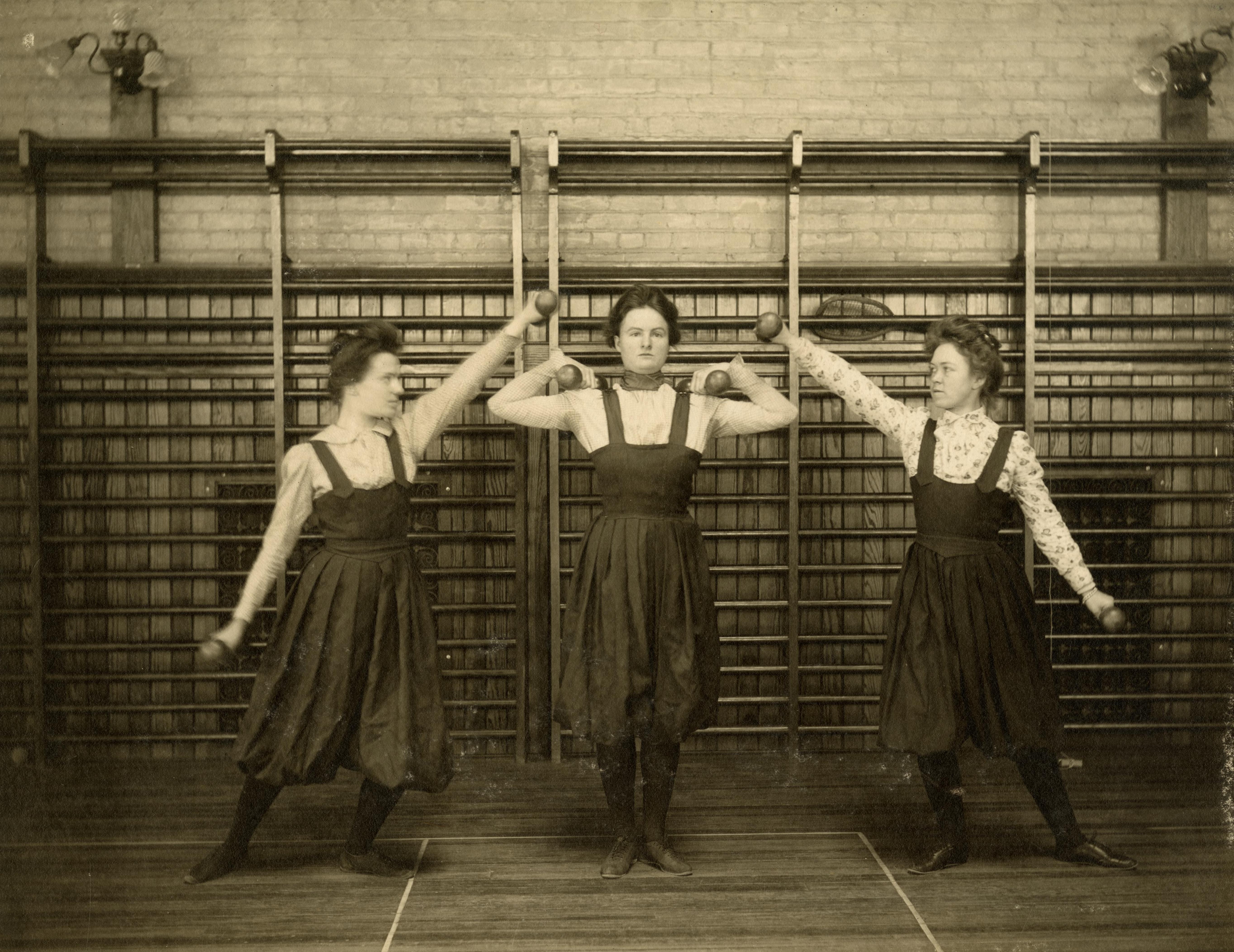 - Women's Gymnastics in Barbour Gymnasium, ca 1903, dumbbell exercise