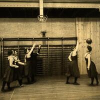 - Women's Basketball, playing in Barbour Gymnasium, ca. 1904