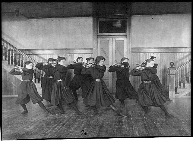 - Female students exercising with dumbbells, Western High School, Washington, D.C.